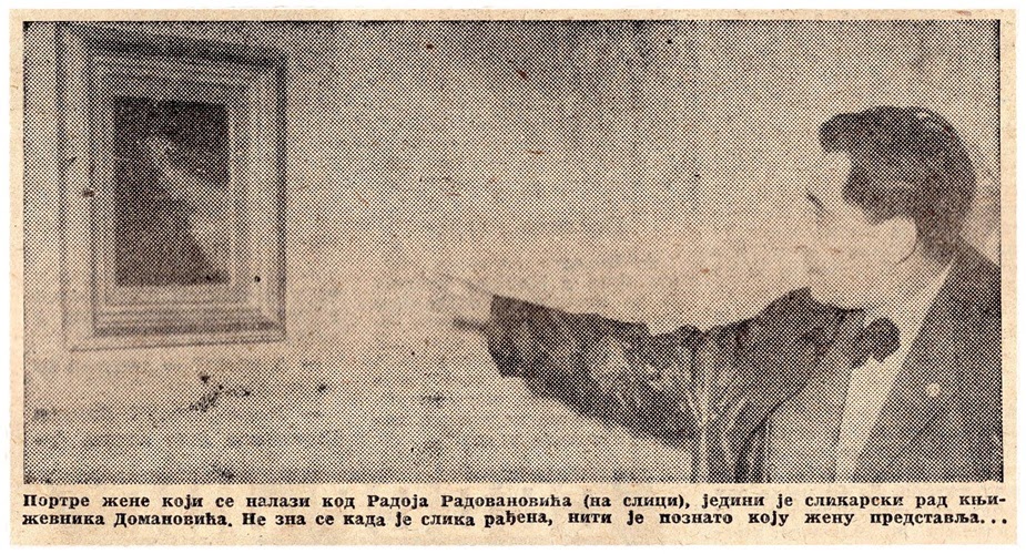 Овај интересантан и лепи портрет је данас својина гђе Данице Радовановић, кћери пок. Радоја Домановића.